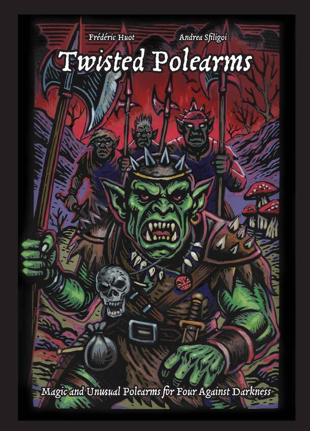 A Twisted Polearms: Magic and Unusual Polearms for Four Against Darkness egy könnyen tanulható kiegészítő a Four Against Darkness társasjátékhoz, 1 - 1 játékos részére. A játékmenet erősen épít a kockadobás mechanizmusra.