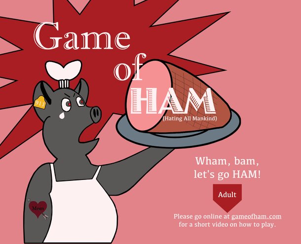 Game of HAM is a party card and board game that will have players squealing with laughter or turning away in shame. The adult version is meant for people who like their humor the way Scrooge likes his coffee, dark and bitter.