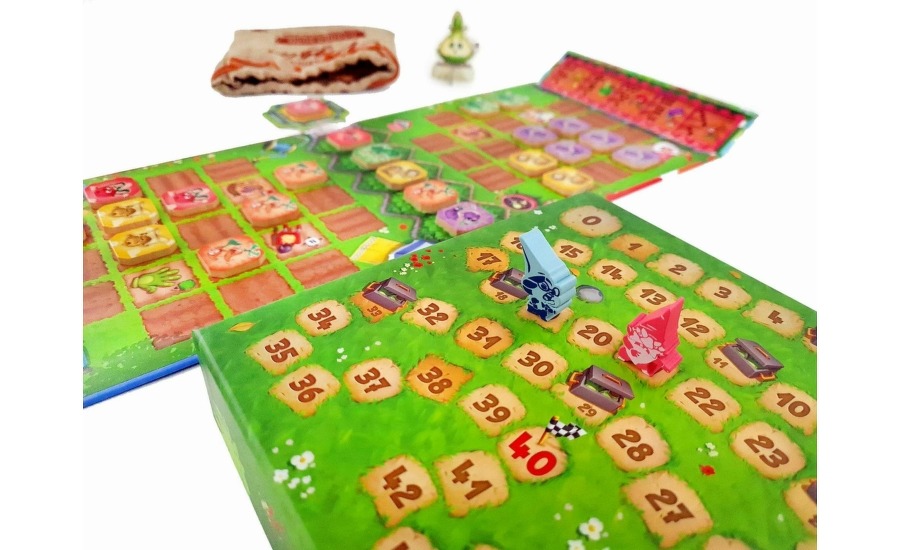 A játék vidám alaphangulatát számunkra már az az ötletes megoldás megalapozta, hogy a játéktábla területe (azaz a két kert) a doboz kihajtogatásával alakul ki, illetve külön pontozótábla sincsen, az a doboz alján van kialakítva. Egyedi és egyben tematikus továbbá az a szabály, hogy a játékot az a játékos kezdi, aki legutóbb evett paradicsomot. 😀🍅