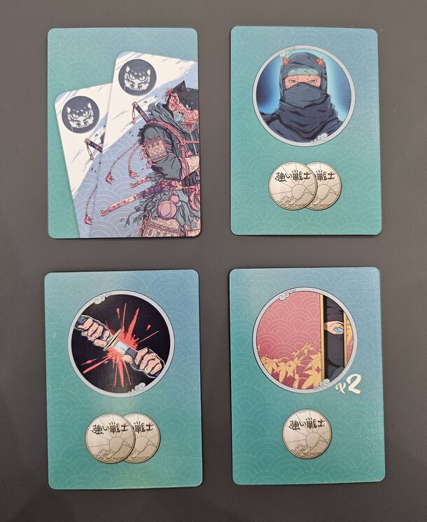 Special 13-cards deck contains hidden single-use bonuses for players. Each player is dealt 2 cards at the start of the game and can use them at any time during their turn. It was one of the stretch goals during Kickstarter campaign.