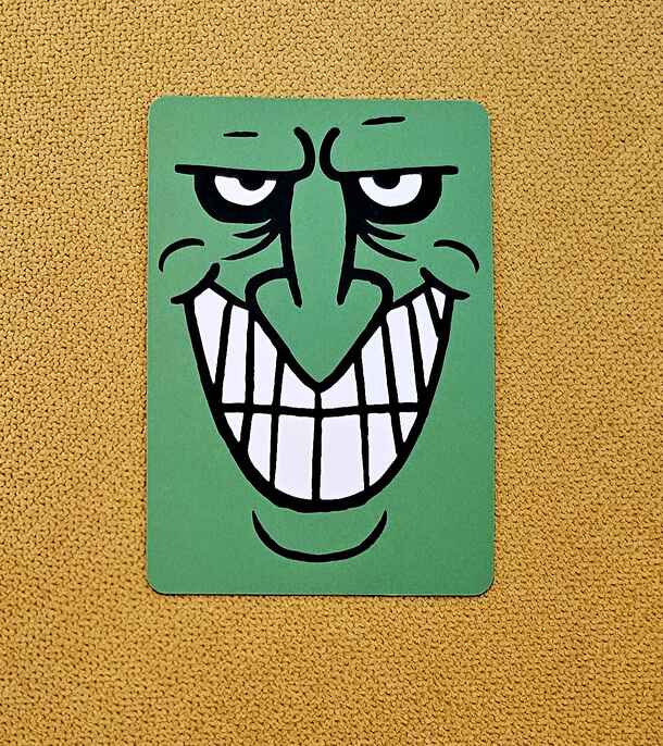 This promo card is shuffled in the deck before the game (instead of the one of the Good Faces). A player can hide Greedy Face in his/her stack to steal the card from another...