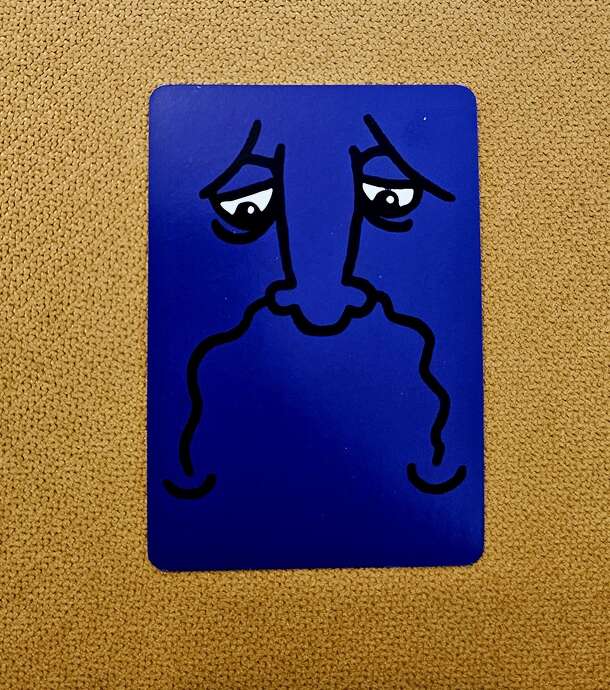 This dark blue promo card is shuffled in the deck before the game (instead of the one of the Good Faces). A player can hide Sad Face in his/her stack to steal cards from another...