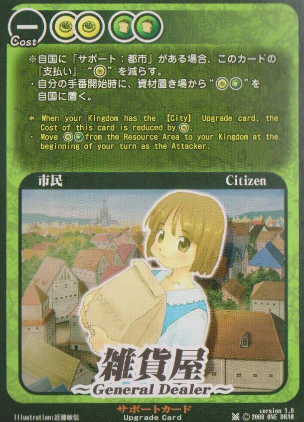 This is a promo card distributed by the designer upon purchase of the game Greedy Kingdoms at events. General Dealer was, for example distributed at the Essen 2009 Japon Brand booth.