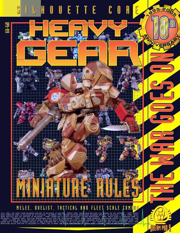From the back cover; To celebrate the 10th Anniversary of Heavy Gear, we bring you the new 3rd Edition of miniature rules! The new Silhouette Core Heavy Gear Miniature Rules takes the acclaimed Silhouette game mechanics to the next level, with game play from one on one Melee Scale to massive Fleet Scale battles. The Tactical Scale has been revamped to...