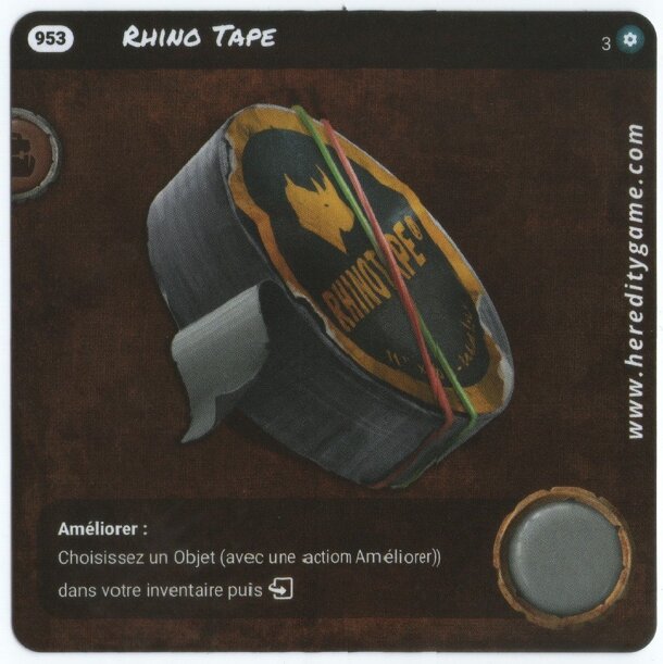 A Heredity: Rhino Tape Promo Card egy közepesen összetett kiegészítő a Heredity társasjátékhoz, 1 - 4 játékos részére, az átlagos játékidő hosszú, akár 2 - 3 óra is lehet. A társast, a bonyolultsága miatt, csak 14 éves kortól ajánljuk kipróbálni. Kooperatív jellegű, a játékmenet erősen épít a történetmesélés és a szcenárió / küldetés / kampány...