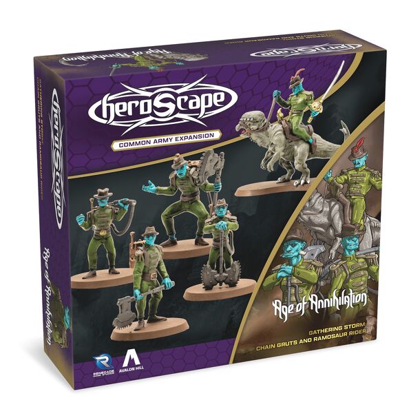 A Heroscape: Chain Gruts & Ramosaur Rider Common Army Expansion egy könnyen tanulható kiegészítő a Heroscape Master Set: Rise of the Valkyrie társasjátékhoz, 2 játékos részére. A társast, a könnyebb tanulhatósága miatt, akár már 8 éves kortól ajánljuk kipróbálni. A játékmenet erősen épít a hatszög-rács, a kockadobás, az akció draftolás, a die icon...