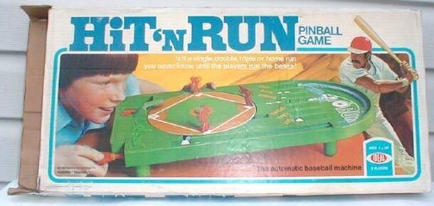 Simple game something like a pin ball machine. Ball is hit and goes into holes that represent hits, balls, strikes and outs. When that happens players move around the bases. Object is to score more runs than your opponent. Game comes with base runners for both the red and the blue teams.