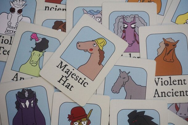 These horses each have two scoring criteria, and depending on which horses you've ridden in which order, these criteria might result in positive or negative points. The player with the highest score wins.