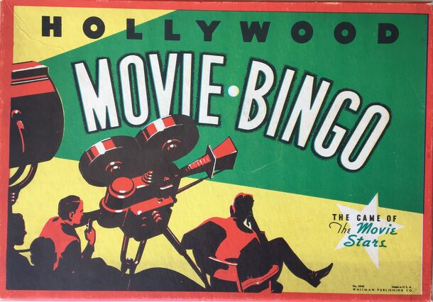 This bingo-style game has a spinner with the letters of the alphabet, and 10 player cards, each bearing the names of three '30s Hollywood stars, one with 5 letters, one with 6...