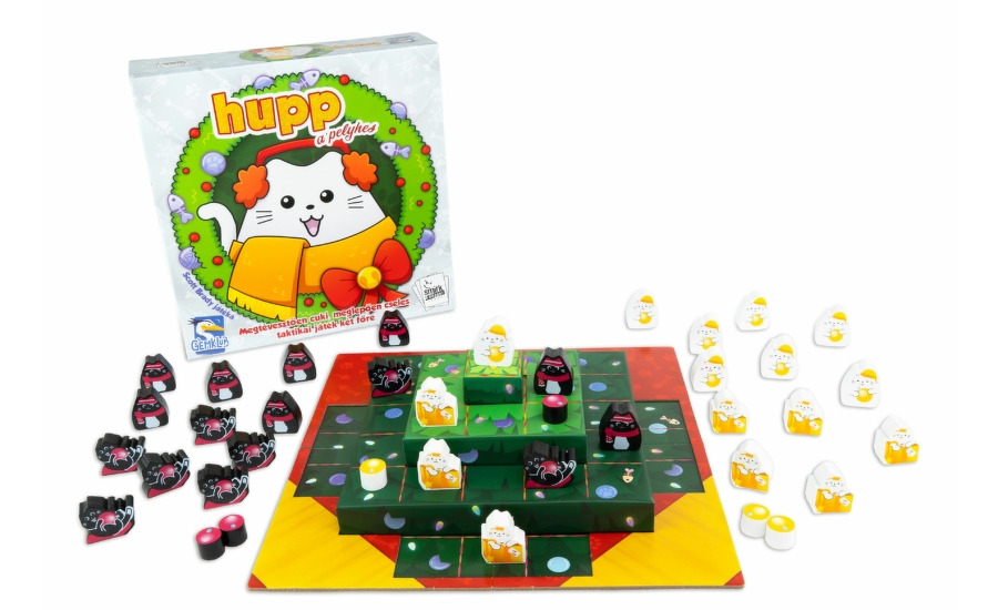 A Hupp a pelyhes egy könnyen tanulható társasjáték, 2 játékos részére, az átlagos játékidő rövid, csak 20 - 30 perc. A társast, a könnyebb tanulhatósága ellenére, csak 10 éves kortól ajánljuk kipróbálni. A játékmenet erősen épít a minták, a rács mozgás és a slide/push mechanizmusokra. Civakodó cicák az ünnepi díszek között. A Hupp a pelyhes egy...
