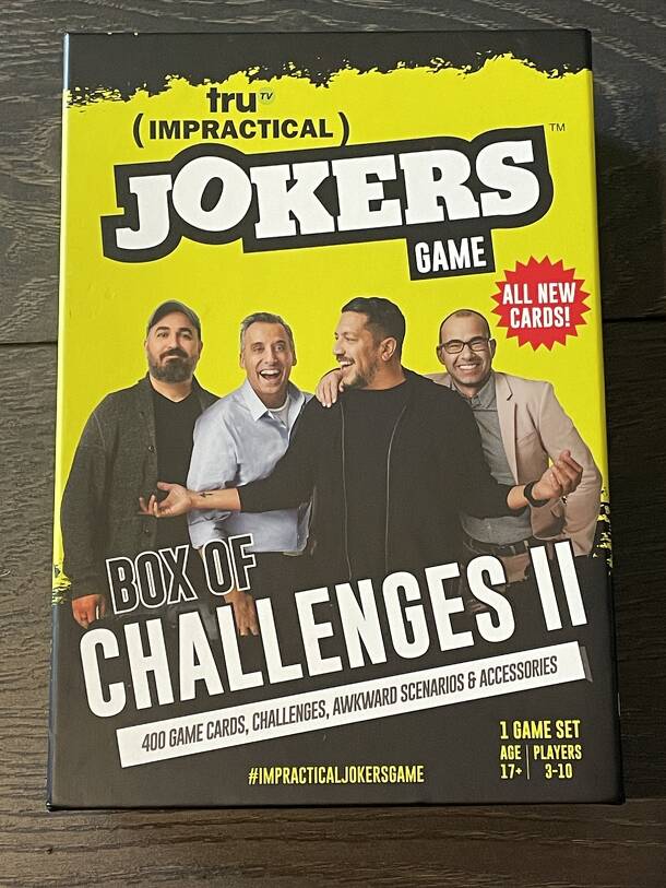 Box of Challenges 2 has all new cards! Play as a stand alone game set or combine with your first Impractical Jokers Game: Box of Challenges for even more straight-up hilarious...