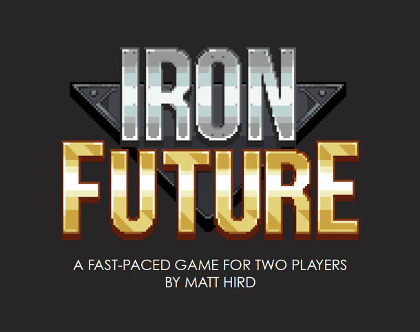 Iron Future is a two-player game with deckbuilding and dice elements. It takes place in a dystopian near-future where the financial incentives for the military-industrial complex have collapsed, and factions have arisen to seize what resources they can using hardware sold to the highest bidders. The art style evokes 16-bit video games of the 1990s.