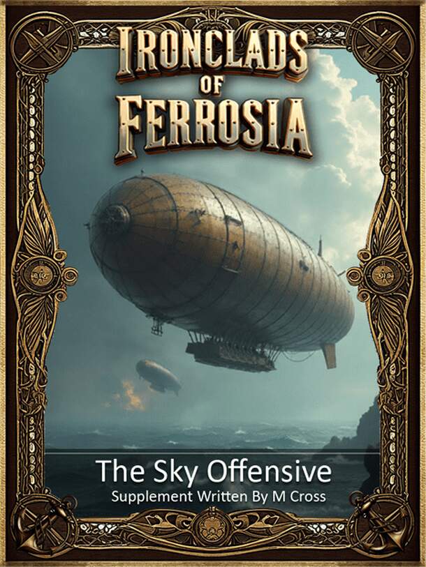 The Sky Offensive, is the first supplement for the tabletop game, Ironclads of Ferrosia. This expansion elevates your gaming experience by incorporating aerial combat into the rich world of Ferrosia.
