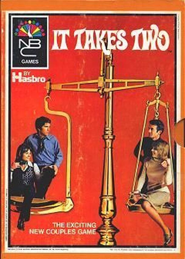 NBC/Hasbro's "bookshelf" line included several game show-esque board games including The Mating Game, Rhyme Time, Trivia, Chain Letters, and It Takes Two. Of these, only the last was actually based on a game show (albeit one played only by celebrities)...and yet contains no hint of this aside from a slightly similar logo, resulting in a generic-looking game that less-knowledgeable game show fans may inadvertently pass on.