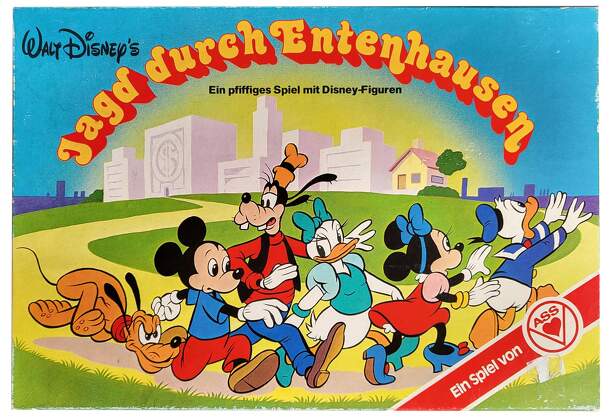 1 board, 6 figure cards, 60 turn cards, 6 Disney-pawns. Mickey Mouse, Pluto, Minnie, Donald Duck, Daisy and Goofy are at the start for a funny run through Entenhausen village....