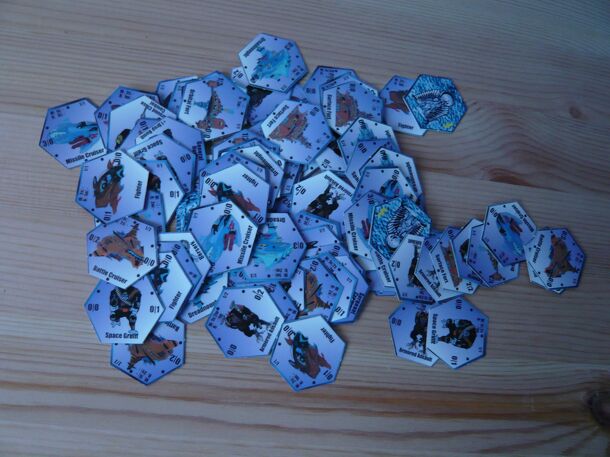 JUMP: Genesis Savage Manakins vs. Micro Titans is a strategic level conquest game that can be played solo or with up to 4 players if a second set is used. The object of the game is to conquer the Home World(s) of the other player by using space and ground forces, and fortifications as defense. Although most of the pieces are hex tiles, special measuring...