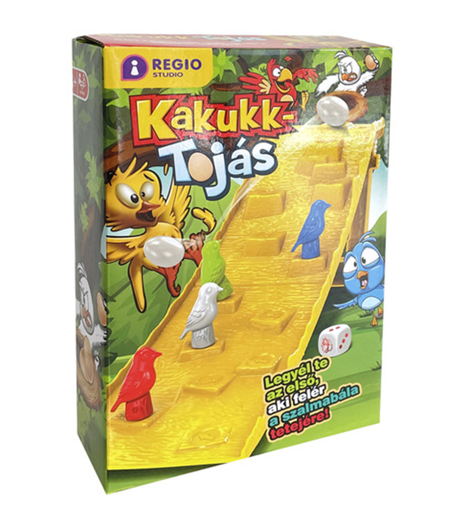 Kakukktojás ("Find the Misfit") is a visual recognition party game designed for children. Players are shown cards with multiple images and must quickly identify which one image does not belong in the group. Speed and accuracy are key—mistakes may cost points or allow others to answer first.