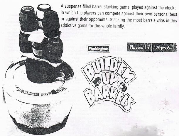 Another balancing game that followed in the Tsunami named Jenga. In this game, players get to stack plastic barrels and planks on a slowly rotating base against the clock. The pile will tumble when the base stops rotating and you score for how much you had constructed before the collapse. The one player game is basically "See if you can beat your best...