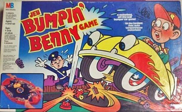 This game is a seemingly typical flipper game in which players sit on opposite sides of the board and use flippers to try to score goals against their opponent. The difference is that instead of a ball the game uses a battery operated plastic car (driven by Benny) which moves around the playing field all by itself. So players must use their flippers to try...