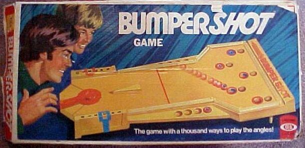From the box, "The game with a thousand ways to play the angles! Bounce your puck off the bumpers and into the scoring holes....or go for a reject and cancel your opponent's score!" This is a dexterity game, with a spring loaded launcher and rubber band bumpers all along the edges. It slightly resembles a game of shuffle board, but you must bounce the puck...