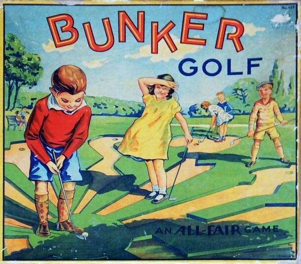 Bumper Golf is a deluxe version of the carom golf game, you might play at a Parks and Recreation building. The game board depicts an entire 18-hole golf course. Players shoot their 'balls' (wooden disks) from the numbered tee spots and aim for the equivalent numbered 'hole' (cup depression.) There are two ways to play. In the first version, each player...