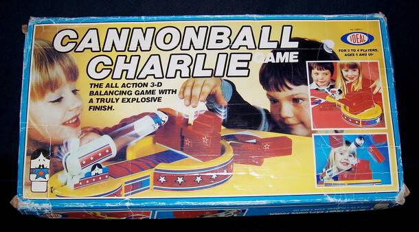 Players spin to see what type of plastic brick to add to the wall being built in front of Charlie, who patiently bides his time in the shaft of an elastic-band loaded cannon. When a certain weight threshold is exceeded, the elastic band trigger is released, propelling Charlie into the wall and eliminating the player who caused this to occur from the game....