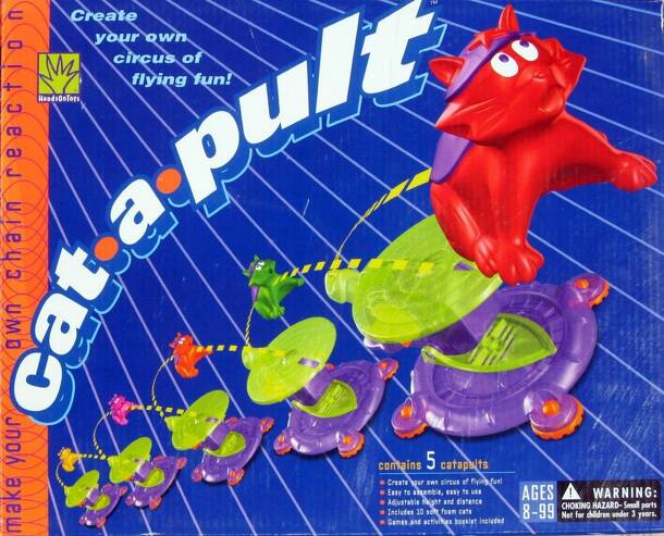 This is a dexterity "aiming" game where you flip plastic/rubber cats to cause chain reactions. It can be played solo, but it is intended to be played in a competition set-up with increasingly complex chain reaction set-ups. While the game doesn't specify a maximum number of players, six is the highest number that would not have too much downtimes between...