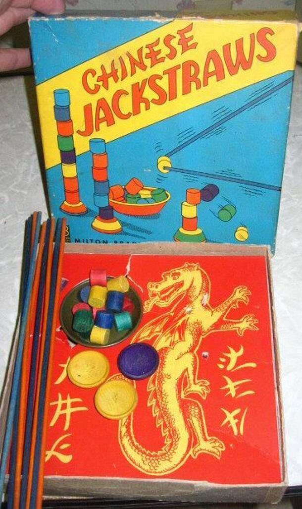 A game of tossing balls at a target. Stand up the figure of the "Chinaman" at the end of the table. The players are to stand at the other end. The game is to throw the balls into Chinaman's mouth. Each player in turn throws all the balls, and score one for each that goes in the mouth. Note: Title belongs to English language playground rhymes, mocking or...