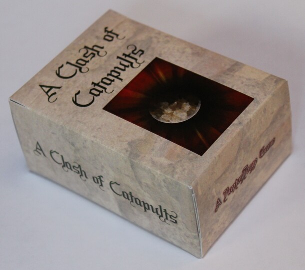 Players first tile together wall cards to create a fortification. Then players toss rock cards at the opposing walls, scoring any wall segments hit. A tossed rock card must be from at least 2 feet way, it most be from at least 1 foot in the air, it must flip over at least once in the air, and it must no land with the 'miss' side up. Players each toss six...