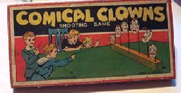 The game consists of a board with holes in. Each hole scores a certain number of points. At the back of the board, a three-dimensional 'slide' is erected. Into the top of this slide, a player in his turn, drops a ball. The ball will bounce around the circus clowns at either side of the slide and, eventually, come out at the bottom and score points when it...