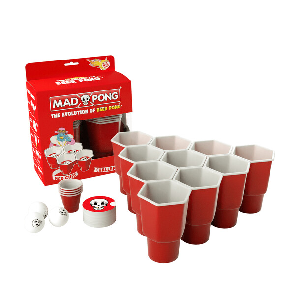 MadPong is a wild twist on classic beer pong with hilarious challenges inside each cup. When you lose a cup, you drink it and then complete a funny challenge from the waterproof card inside. Everyone races to follow the challenge, and the last to finish takes a shot. Win by getting rid of your opponent's cups by throwing a ball in each one. This game is...