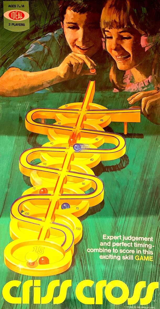 Opponents roll balls down one of two tracks on the plastic gameboard, depending on whether they are the 'offense' or 'defense' for that particular play. One track is straight; the other meanders in progressively diminishing arcs. There are catching depressions where the tracks intersect, each worth a different score if the meandering balls are knocked off...