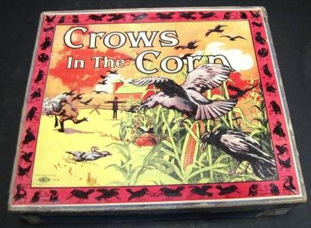 This 1931 game from Parker Brothers was advertised as a splendid shooting game. Crows were inserted on a slide at the rear of a target and automatically appear one at a time. Using a repeating rifle which shot 6 elastic bands, the object was to hit the birds who slid down the ramp and into an opening in the background target. When you hit one the next one...