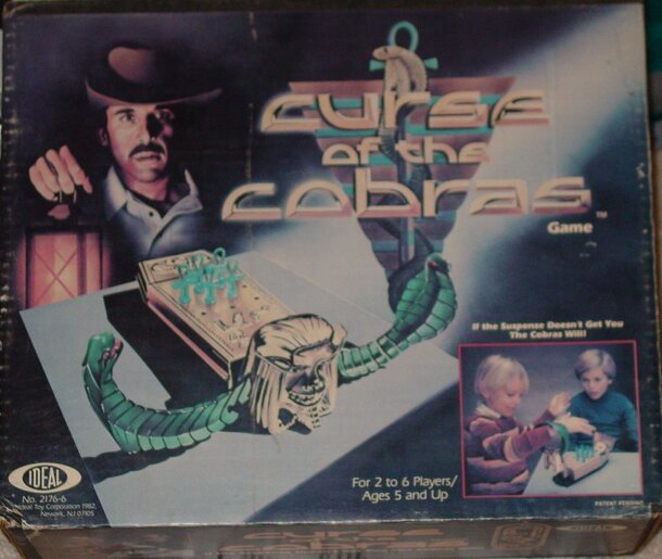 A simply puzzle guessing game where players take turns inserting plastic ankhs into a sarcophagus. One of the holes in the sarcophagus has a mechanical switch that sets off the "trap" which reveals a skull head and launches a handcuff-like cobra ring around your wrist. The mechanism resets to a new hole each time the game is reset. Egyptian theming make...