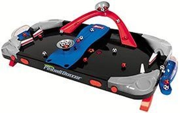 Players try to get as many balls into the opponent's goal while preventing balls from entering your own. Like in pinball, each player controls 2 flippers to move up to 24 balls around the play area. The miniature plastic soccer balls are dropped into chutes, ramps and funnels before the game starts. Feeder mechanisms release the balls into action. The...