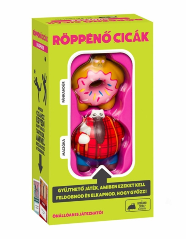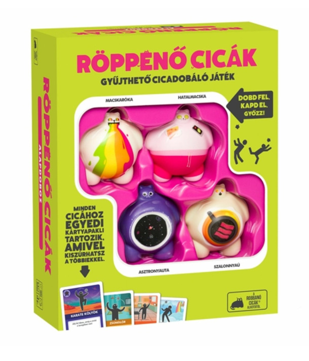 Röppenő cicák – cicaröptetés mesterfokon Dobj a magasba egy cicát, és mutasd meg, mire vagy képes, mielőtt padlót fog! A Röppenő cicák egy lendületes és őrülten vicces partijáték, ahol minden dobással egyre nehezebb a mutatvány. A Röppenő cicák főszereplői nem átlagos cicák – itt van például Macskaróka, Hatalmacska, Asztronyauta és Szalonnyaú –, puha...