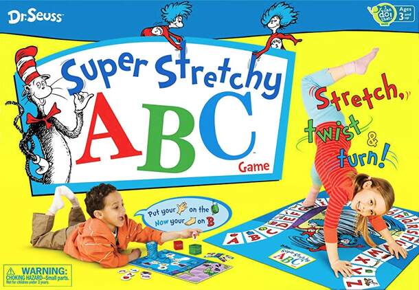 The twisty-turny game of super stretchy alphabet fun! Get ready to twist, turn and s-t-r-e-t-c-h! Can you put your hand on the letter E—while placing your foot on the letter K—AND still put your ear on the letter Q? You’ve got to be super-stretchy to meet the challenge! In this silly game of physical challenges and alphabet fun, kids spin the Thing 1 and...