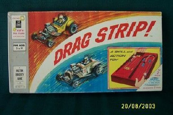 The object of this game is to shoot the marble to "drag" your cars across the finish line first. You place the marble in front of a knob on a spring. You pull back the knob and when you let it go the marble flies up a slight incline on your track and then rolls back down on one of the four lanes on the other side of the track. The marble will push one of...
