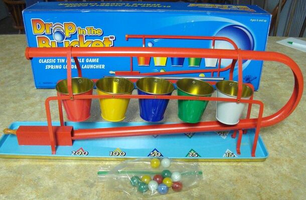 Patience and accuracy are needed in a game relative of darts but using water. With a water proof board at your feet, players aim for targets on the board with dippers in hand. Their are positive, negative, and card spots. Using a round setting, set the round maximum. Getting 3 drops per round, aim and call out which target you're attempting to hit. The...