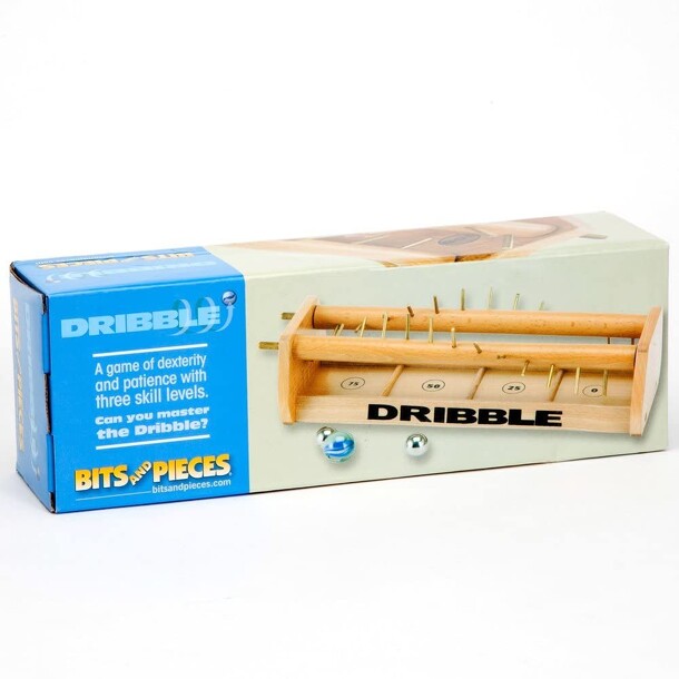 Can You Master The Dribble? Patience and dexterity are needed to conquer this unique challenge. The further you get the ball from one end of the twisting pegs to the other without the ball falling through, the higher your score. Use the larger glass ball or the smaller, more difficult metal ball. This dexterity game consists of a long wooden board with 4...