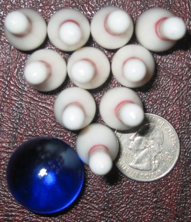 Cute little game in which sets consist of a goal, two soccer shoes and two small dodecahedral footballs coloured with half the faces in black and the other half in white. To play, the shoes fit on the ends of fingers and one player guards the goal, while the other player takes penalty shots with the footballs. With more than one set (different sets may...