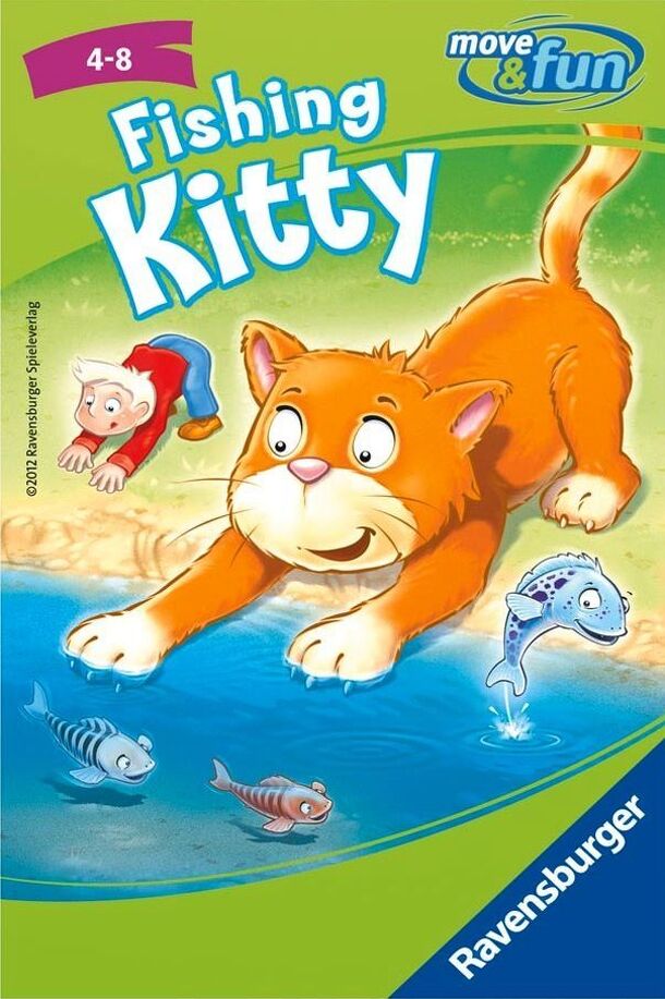 In Streck dich, Mieze!, the players play cats who are fishing in the river. At the start of the game, the river is created by marking the riverbanks with two cords. Cards depicting fish worth 1-3 points are scattered in this river. Now the players take turn fishing. At the start of a player's turn, a cat card is drawn, which shows the position the player...