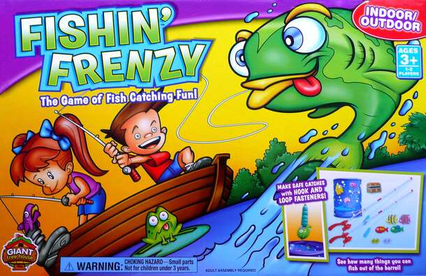 From the game box: Get into the swim with this exciting water game that's fun for the whole family! Players throw their fishing lines into the water and try to catch the colorful sea animals with their fishing rods. For added fun, sea animals also link to each other so you can catch a bunch in one try. The player who catches the most sea animals wins!...