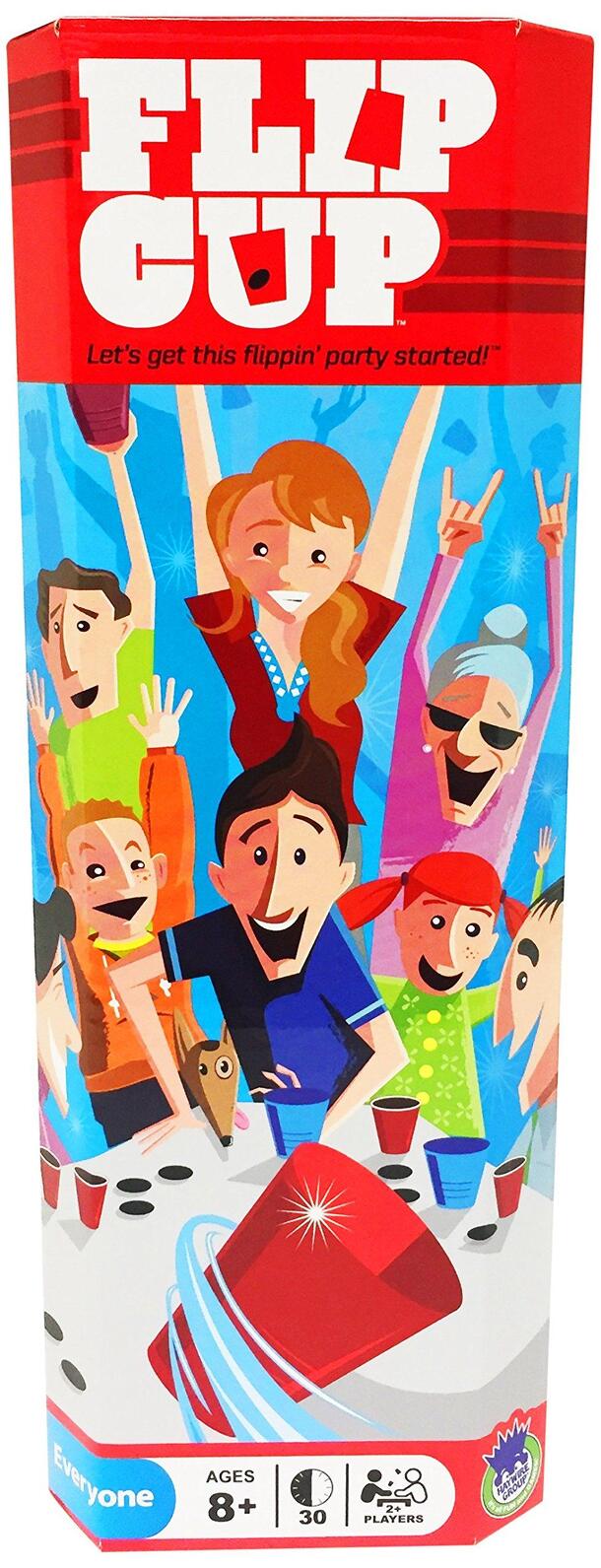 A typical Flip Cup game can be played any number of ways depending on how many player are participating. Each player takes one large blue cup, six small red cups, and one black chip. Shuffle the challenge cards and place them face down on the table. A challenge card will have an activity for the player to complete. For example, the classic challenge card...