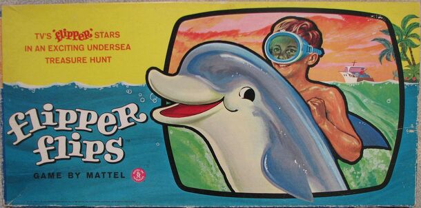 A manual dexterity game of a "role and move" nature. Use the shooter to launch your "Little Flipper" on to the board, and try to land on high scoring areas, while trying to avoid "danger" areas that score no points. Move your diver around the board the number of spaces that "Little Flipper" landed on. If you land on "Big Flipper", on the board, you score 3...