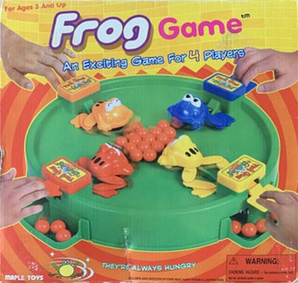 Will you be the first frog to make it to the pond ? Roll the die to determine which frog leg you have to hold onto - and then pull the frog as far forward (for green or blue) or backward (for red or yellow) until the string is pulled tight. After each pull you will be in a new position in the race and must fix the frog´s legs so that both front and back...