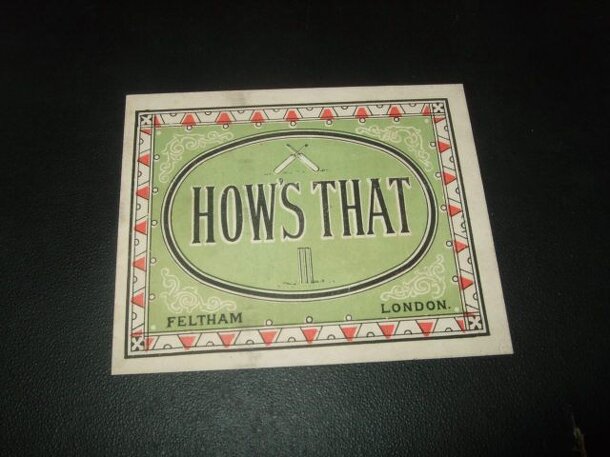 Cricket game. The board has 25 boxes, each marked with a number (runs) or an 'out' decision (Bowled, Stumped, etc.). A match consists of one innings by each player (longer games can be agreed at the start). The first player to bat flips his 11 counters on to the board. If a counter is in a box with a number, it counts that many runs. If a counter lands in...