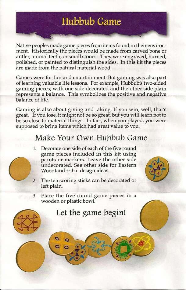 A traditional game played the Pequot Indians of North America. Each player starts with 5 scoring sticks and tosses five sticks or rocks in a bowl. If all five land with a colored side up a player wins 2 points. If three pieces land with colored side up, a player wins 1 point. Any other combination yields no points. If you win any points, you get to go...