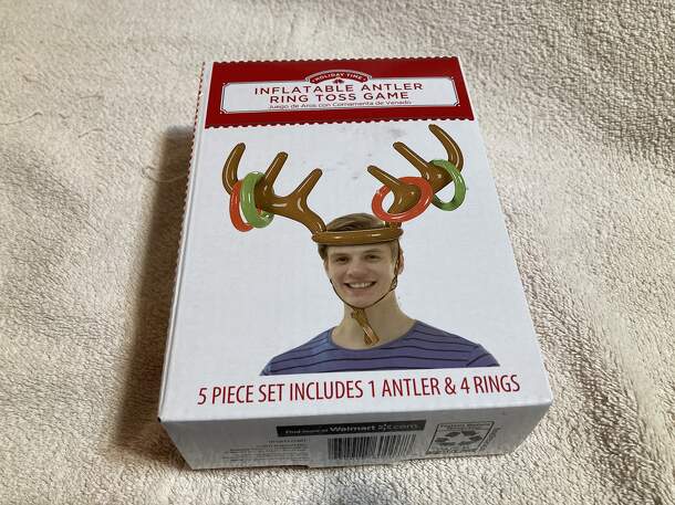 Enjoy this hilarious game at all your holiday parties. Your friends and family will love tossing the rings onto these inflatable antlers All ages will have a blast using this as an excuse to throw things at your head! Easily inflate the antlers and you are ready to play the game. One person wears antlers that are inflated and the other players/teams toss...