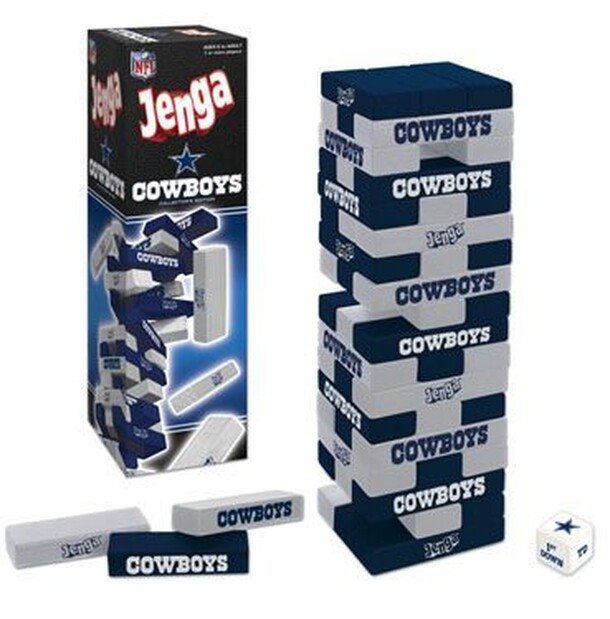 As the tower builds, so does the difficulty…and so does the fun! This classic tower building game features 54 blue and grey hard wood blocks decked out with the Cowboys logo and TWO ways to play. Build your Cowboys-themed Jenga tower the traditional way or play a new and even more challenging game with custom Cowboys rules and a Cowboys-themed dice. Either...